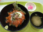 温泉玉子が乗ったサーモン丼